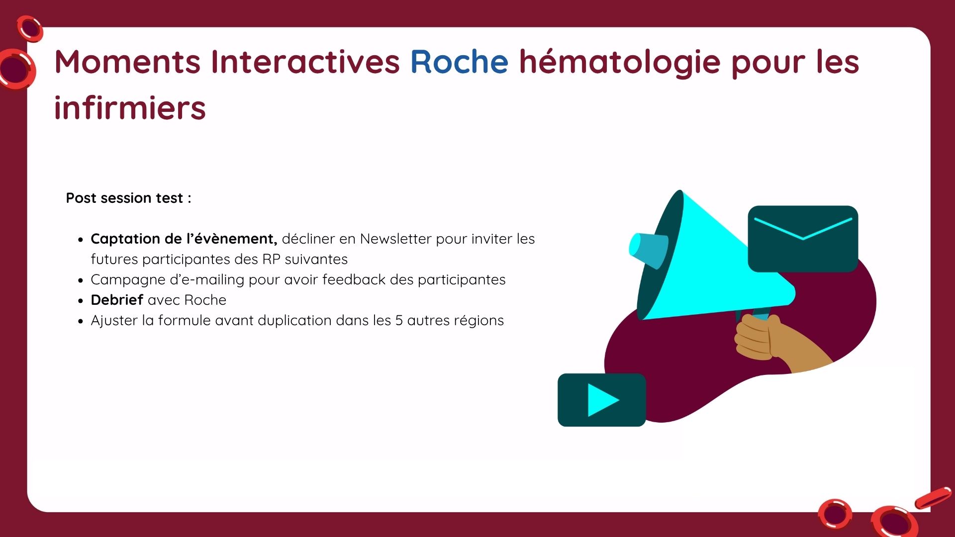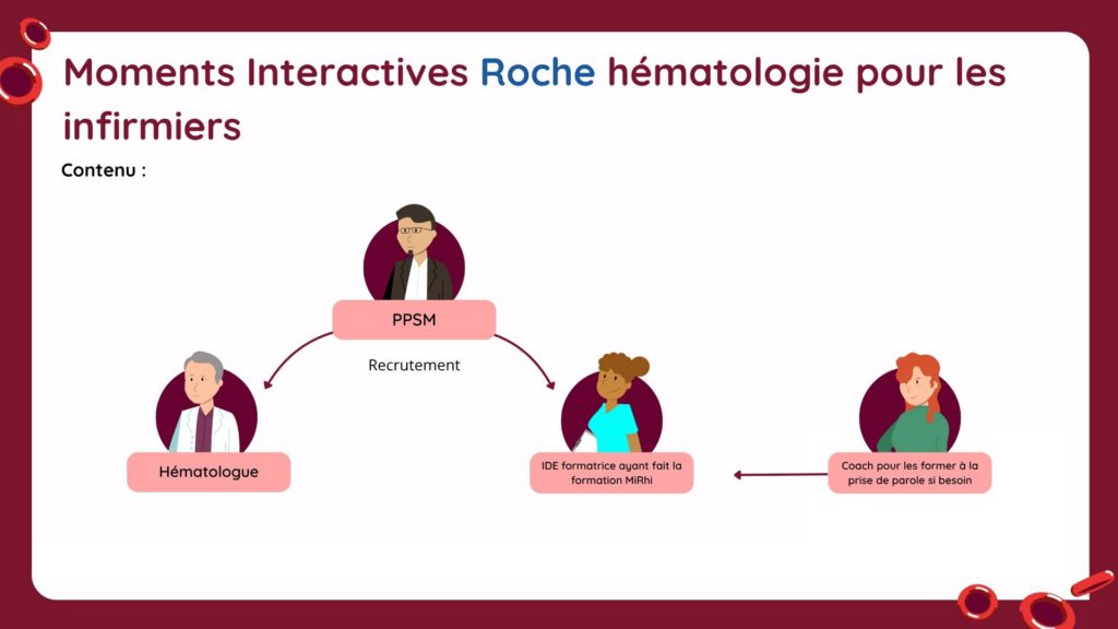 Ces modules de cours, en collaboration avec Roche, furent conçus à destination des infirmiers, sur le suivi des traitements par anticorps bi-spécifiques dans les cancers du sang.