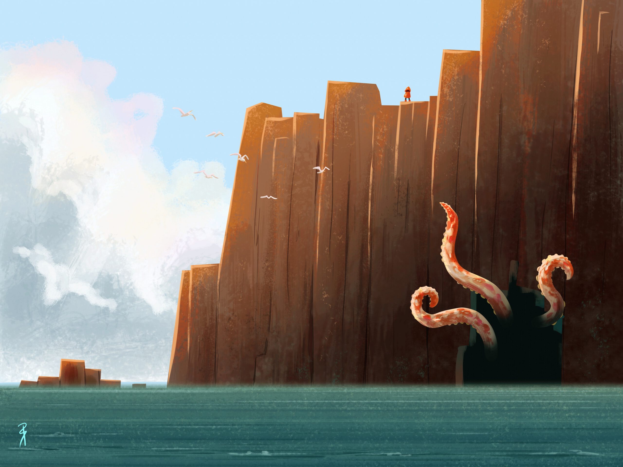 Une illustration personnelle, inspirée par l’ambiance des œuvres d’H.P. Lovecraft (Le mythe de Cthulhu) et Robert W. Chambers (Le Roi en jaune).
