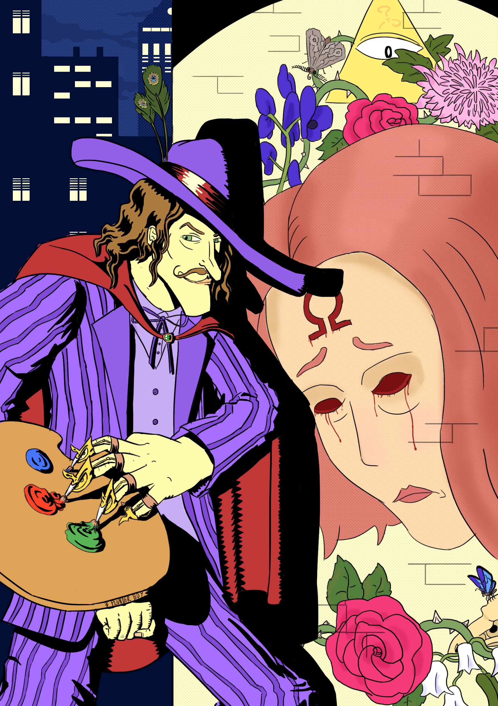 Une illustration pour le challenge n°16 de Digital Painting School, sur le thème des super héros et vilains. En plus de la thématique une contrainte supplémentaire était imposée en choisissant des qualificatifs dans une liste. Voici donc Francisco Ashton Sime, dit « Le Maître », avec les mots Mégalomane, Dérangé, et Coloré.